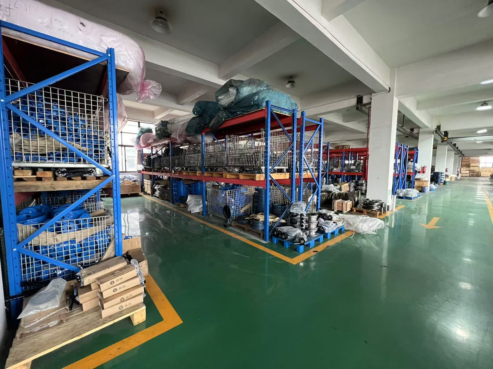 De verpakte kleppen worden naar het magazijn getransporteerd en voorbereid op levering aan de klanten.